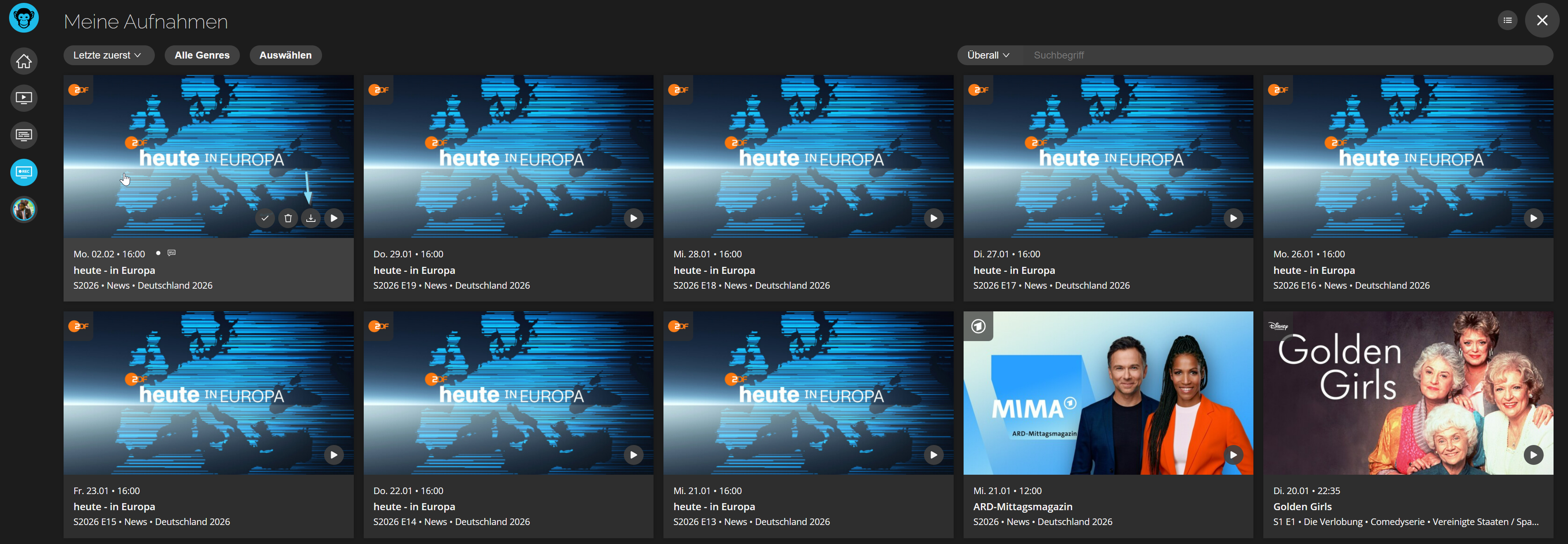 Für zusätzliche Flexibilität kannst du aufgenommene Sendungen herunterladen, um sie lokal auf deinem Gerät zu speichern. Dies ermöglicht es dir, Sendungen jederzeit und überall anzusehen, selbst wenn du offline bist.