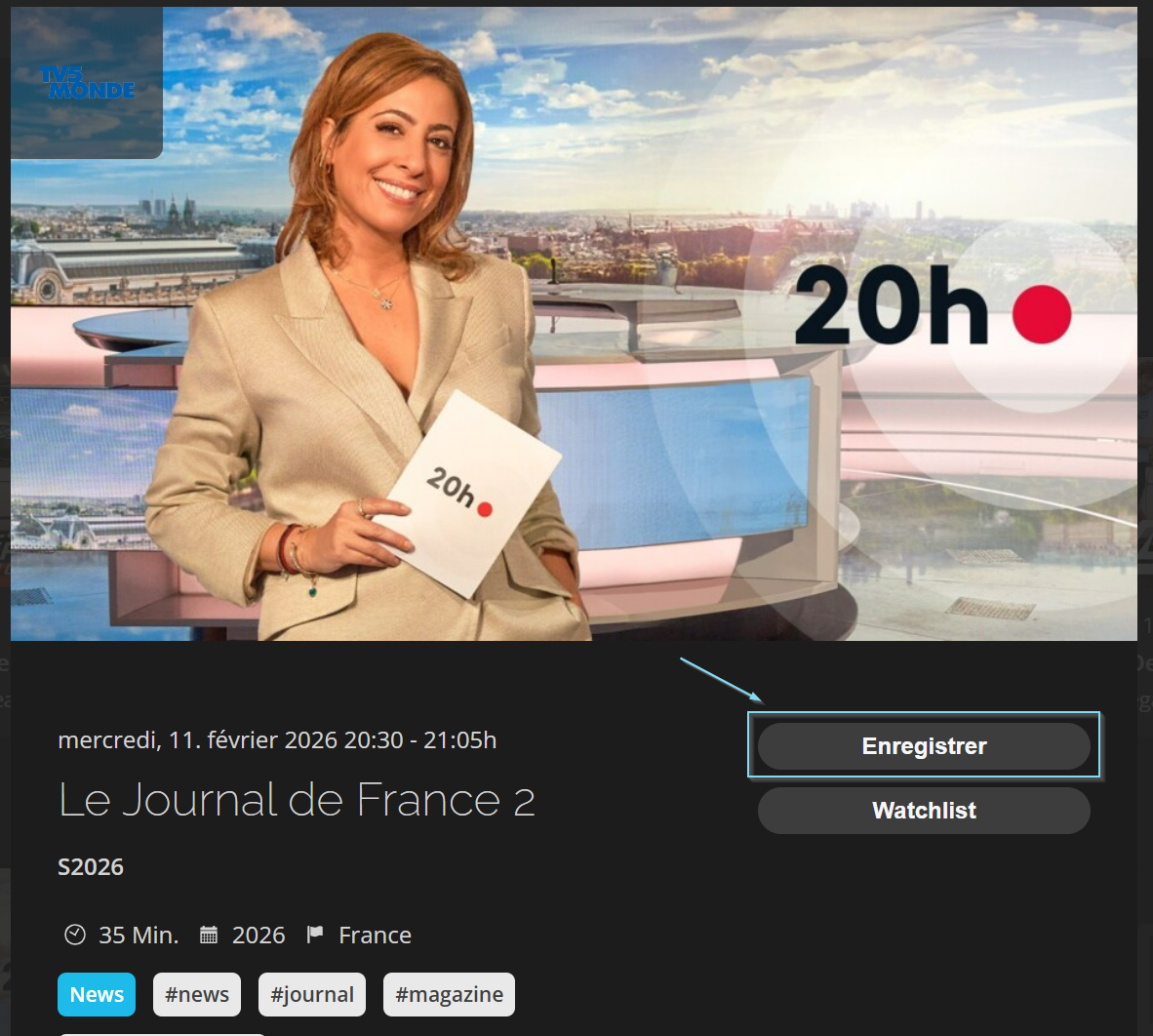 Pour télécharger une émission, vous devez d'abord l'enregistrer. Suivez ces étapes pour télécharger un enregistrement :