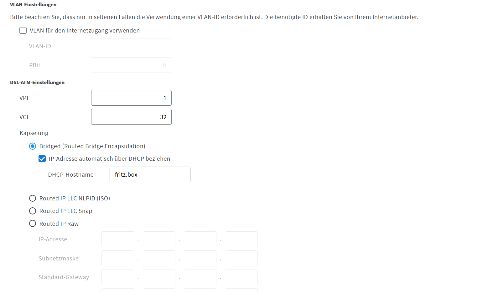 - Type de connexion : DHCP